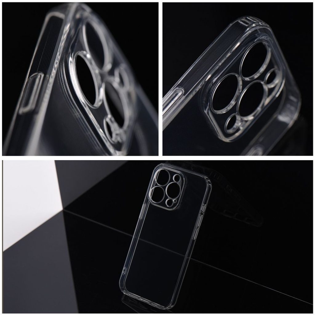 Průhledné pouzdro 1,5 mm je průhledné pouzdro s dodatečnými výztuhami na okrajích a ochranou fotoaparátu. Protože je velmi tenké a pružné, dokonale padne do ruky.