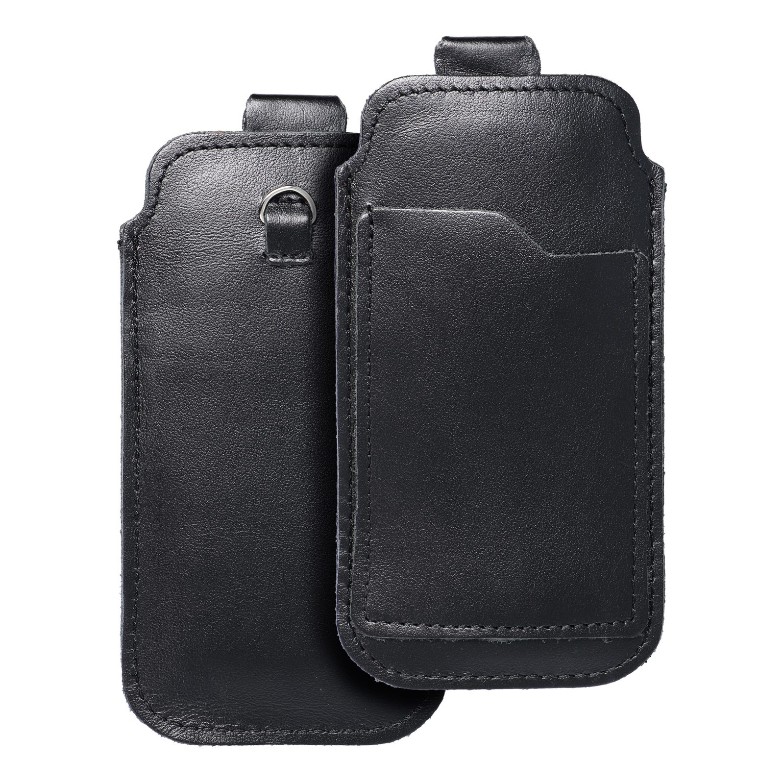 Univerzální kožené pouzdro Royal na telefon / černé, které lze připnout na pásek. Vyrobeno z přírodní italské kůže. Tento model ve velikosti M je určen pro telefony o rozměrech 12,4 × 5,9 × 0,8 cm.