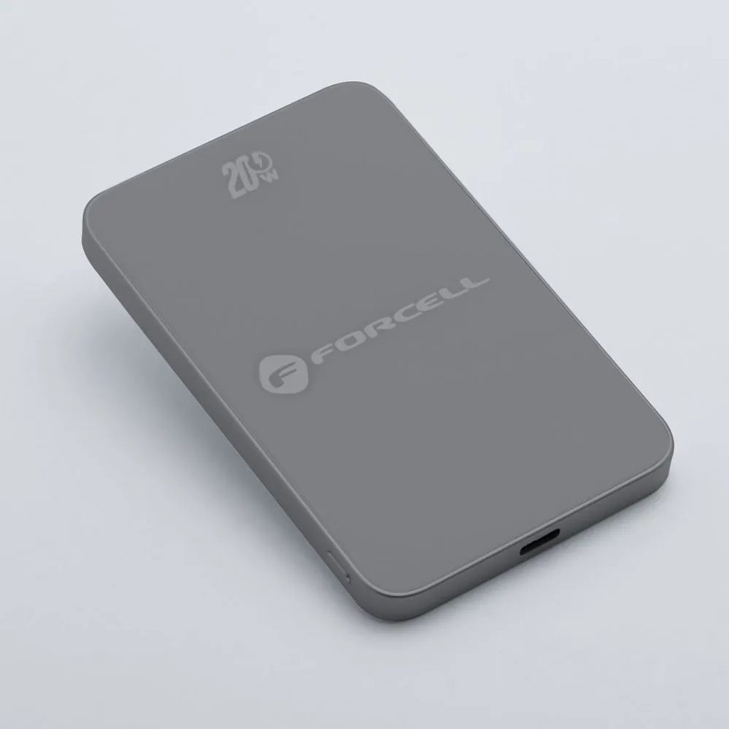 Tenká powerbanka Forcell F-Energy Super Slim F5k8 s MagSafe PD3.0 QC4.0 15W 5000mAh - šedá